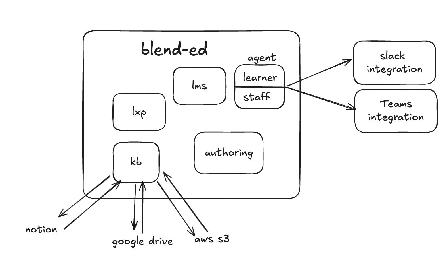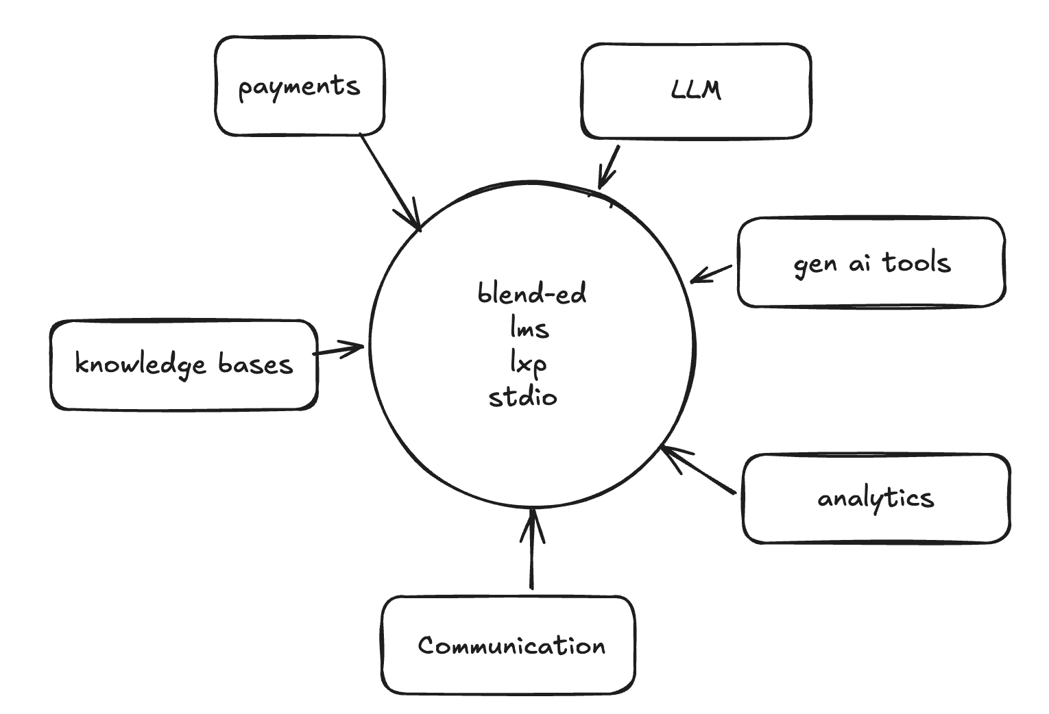 Blend-ed is designed with a modular integration architecture that allows the platform to connect with external services without tightly coupling them to the core system. This approach makes it possible to integrate different tools and providers while keeping the core learning platform stable and scalable.